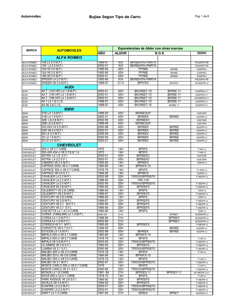 Top 10 Chevrolet usados baratos en Mxico. Buenas cuanto debe de ser la medida de calibracion de las bujia para una camioneta F150 motor 300 en linea. Tabla De Calibracion Bujias Golf Pictures To Pin On 638x856 Tabla.