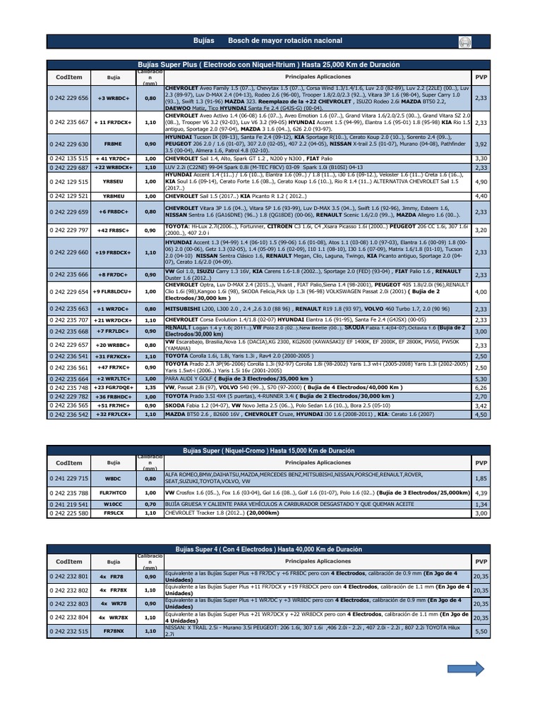 Tabla De Ayuda En Bujias Actualizado Con Precios Transporte Privado Sedanes
